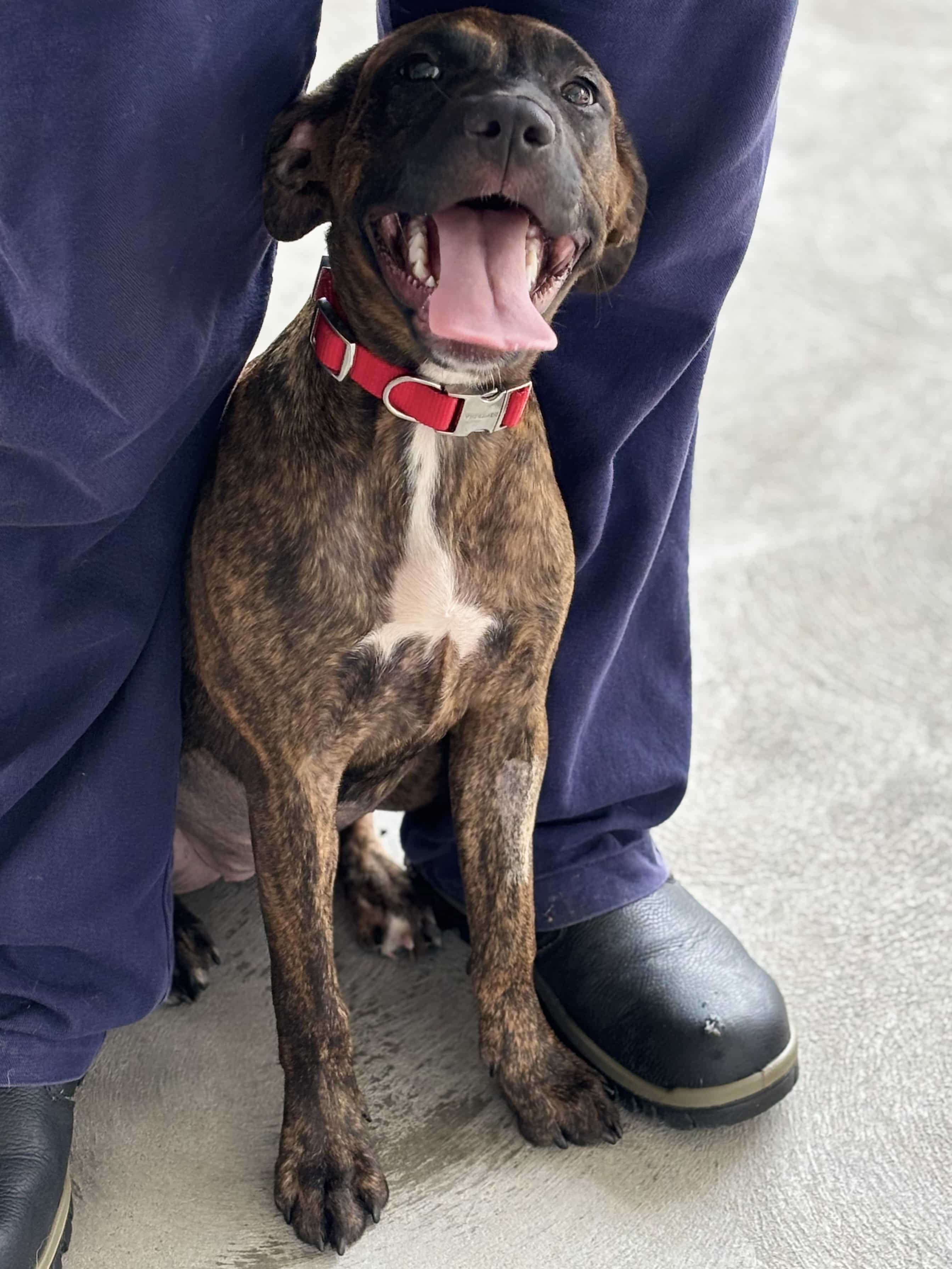 Hi, I’m Ottawa! I’m a 4-month-old female American Staffordshire Terrier x Golden Retriever with a big heart, a curious nose, and puppy energy to spare. I can be a nervous when meeting new people, so I’ll need slow, positive introductions to new faces, places, and experiences. I’m learning that the world is full of exciting things, and with gentle guidance, I can grow confident and curious!
