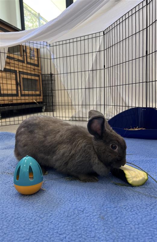 Brynn is a gentle, curious grey bunny with a soft coat and an even softer heart. She has a natural sense of wonder about the world—whether it’s investigating a new corner of the room, sniffing out a hidden treat, or quietly observing everything around him with his bright, thoughtful eyes.