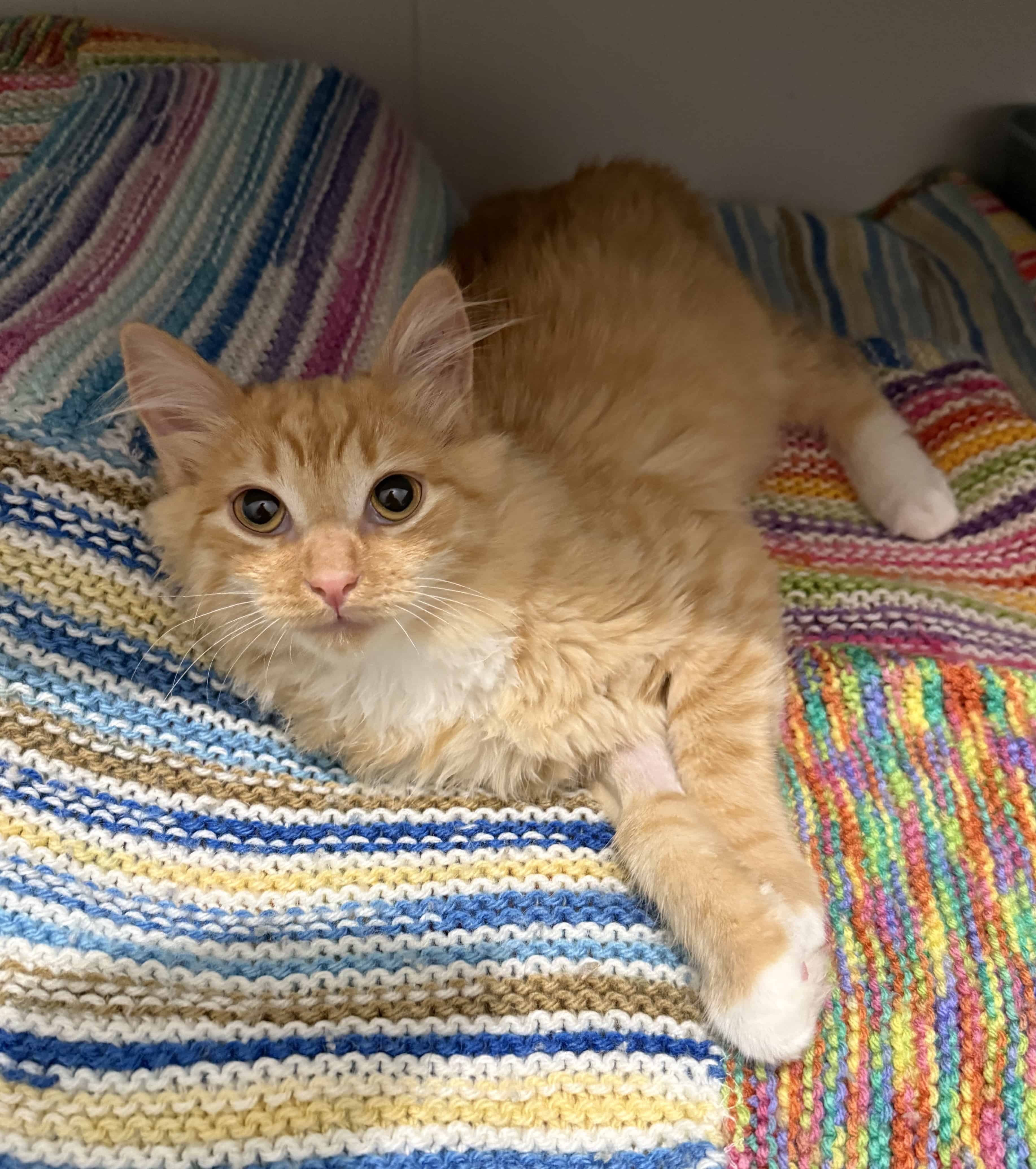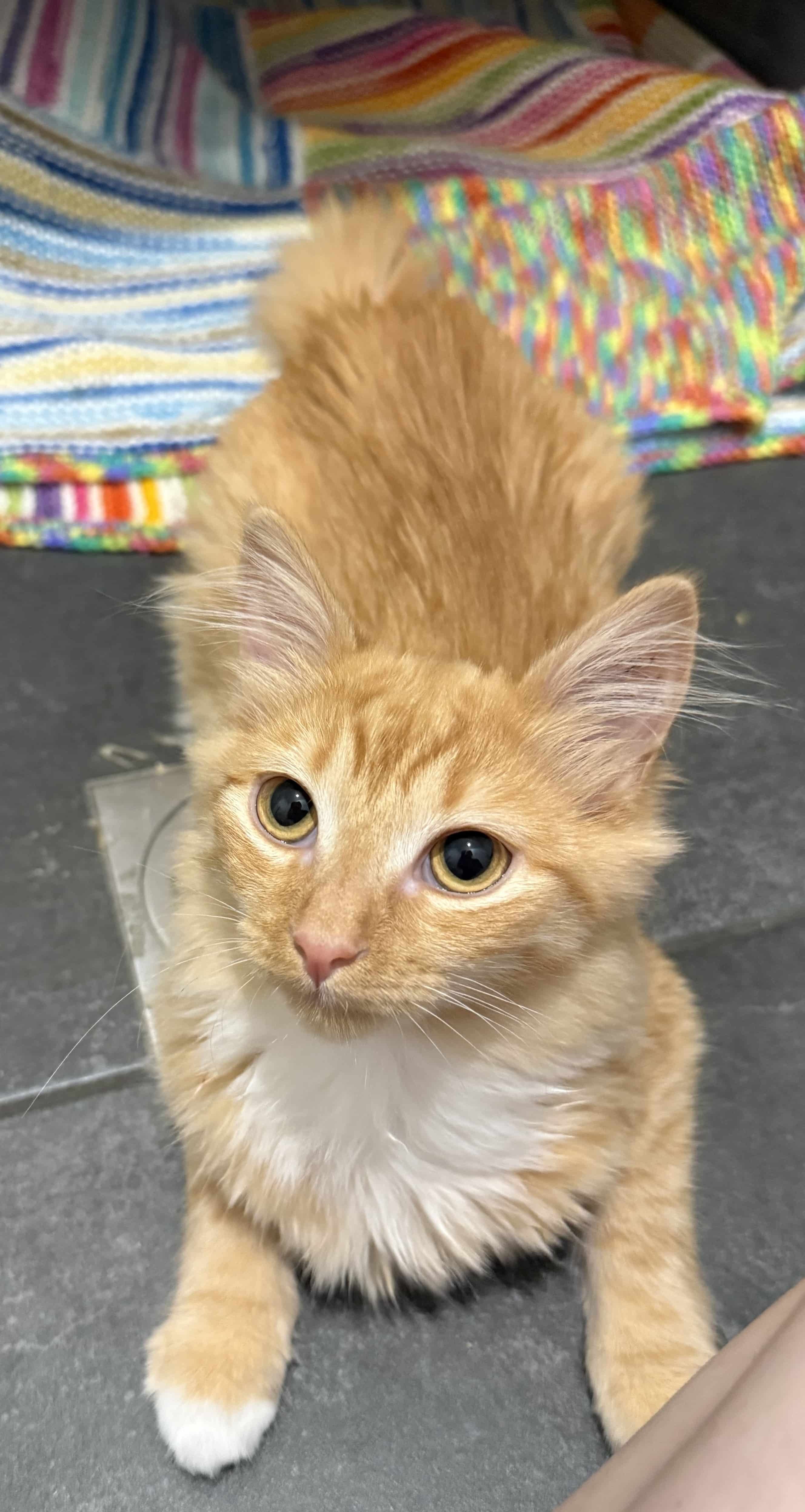 Once he feels safe, Cheddar has so much love to give. He is a little purr machine that will roll around on the floor to get your attention! He loves string toys and treats!