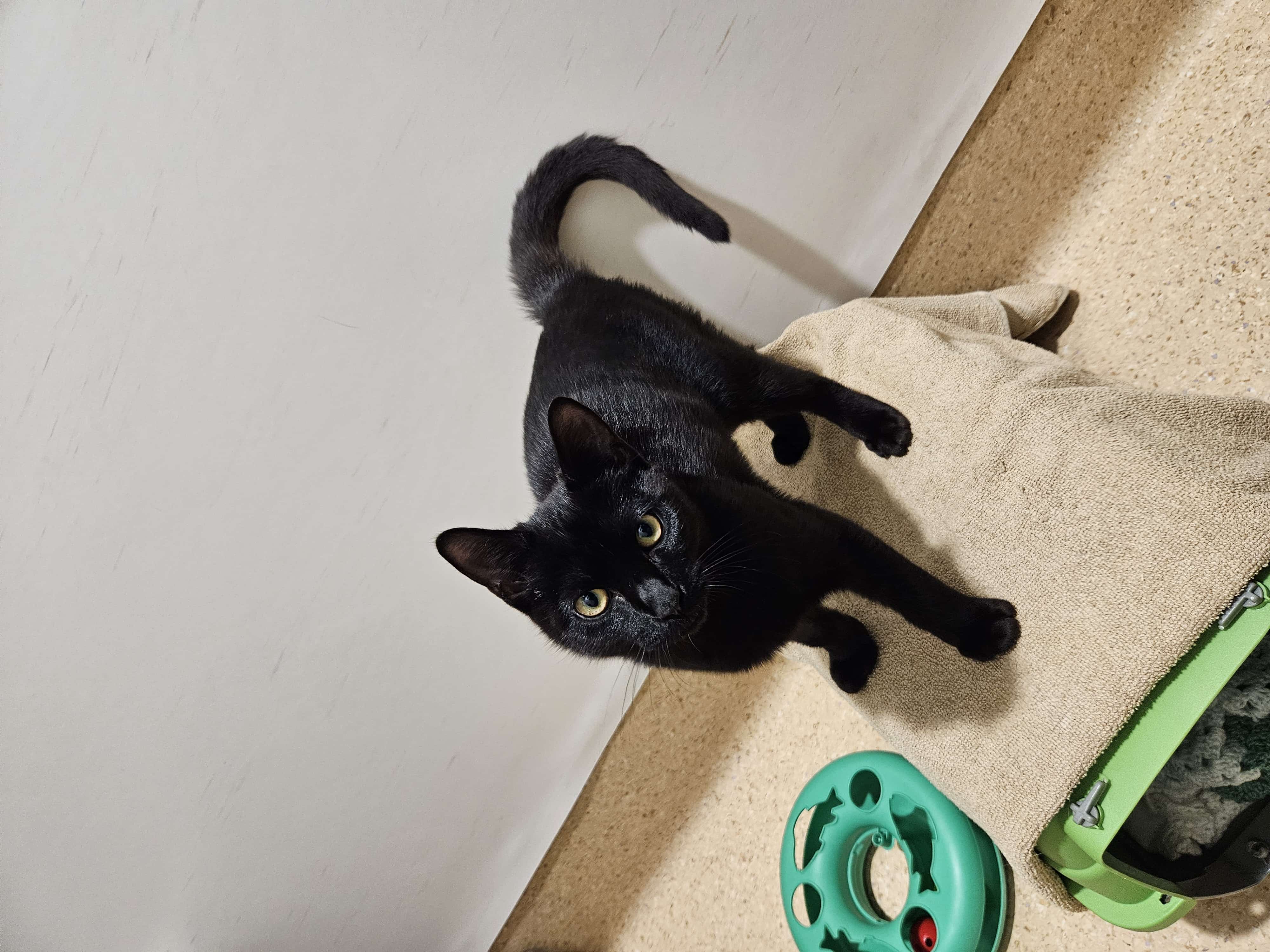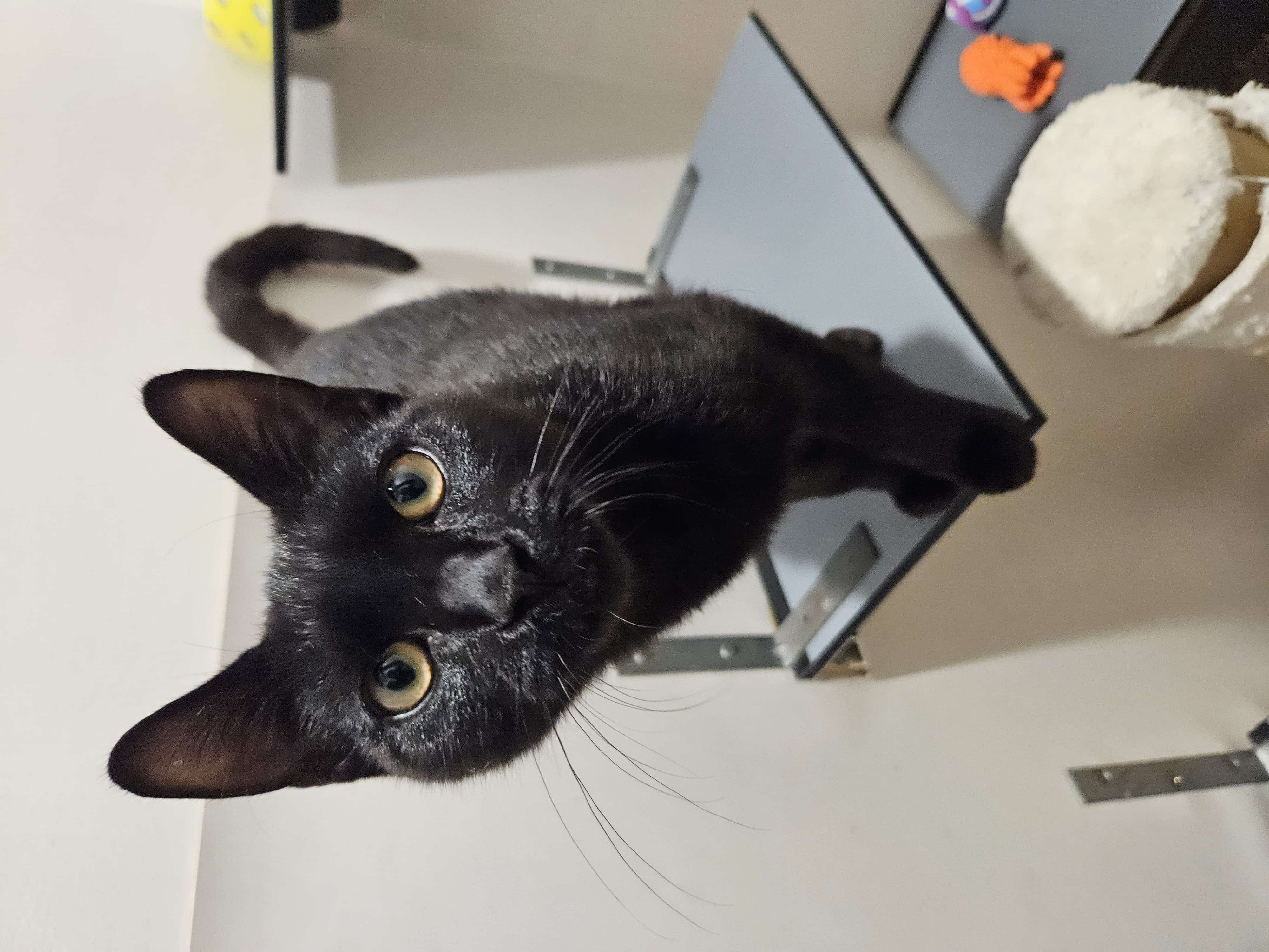 Hi, I’m Cosmo, a playful 6-month-old male Domestic Short Hair. I’m all energy and curiosity—zoomies, pounces, and a nose for every corner of the house. I love chasing feather wands, batting soft balls, and climbing up cozy perches. I’m happiest with daily play sessions and quiet cuddle times after I’ve burned off steam. I do best in a quiet, calm household, where I can settle and purr softly by your side. I’m great with kids who are at least 6 years old and understand gentle handling. My ideal home has safe spaces to explore, a sturdy scratching post, and plenty of enrichment to keep me busy. I’m affectionate once I know you and will reward you with head bumps and happy purrs. If you’re seeking an energetic, loving kitten to grow with, I’m your guy. Could your home be the peaceful stage for my next adventures? My friend that is housed with me, we do like to play and sleep next to each other, if your like two kitty kats then we could go together, or if you would just prefer me, then that's fine too.